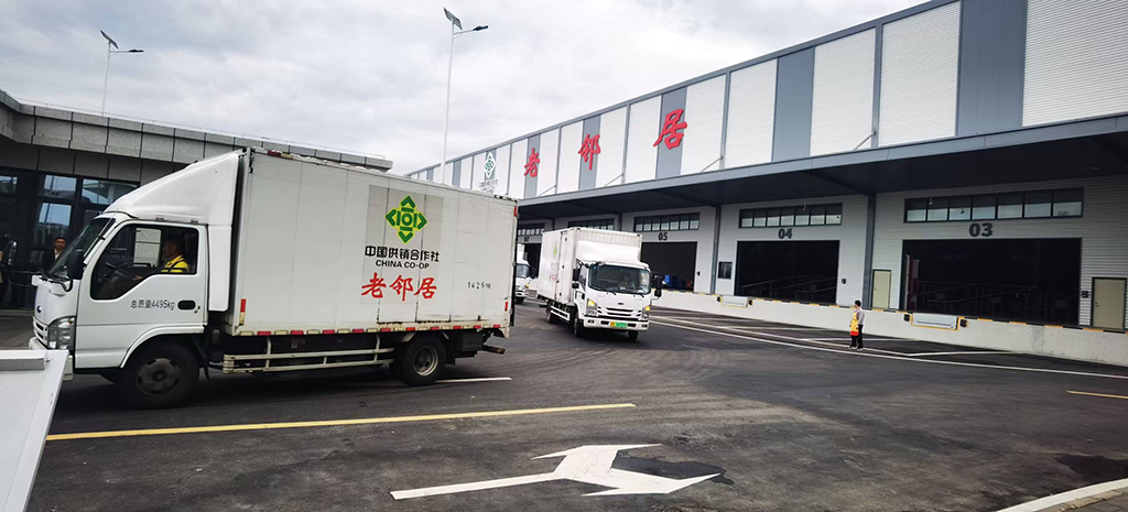 10月18日上午9时,位于彭州市濛阳创业东路88号的物流园区内,满载着粮油、肉蛋奶等民生必需品的老邻居配送车队顺